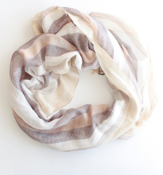 Przepiękny, luźno tkany szal w pasy w stonowanych odcieniach.