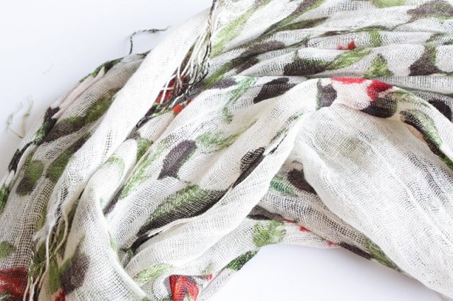Piękny miękki szal w roślinne motywy, o luźnej strukturze.