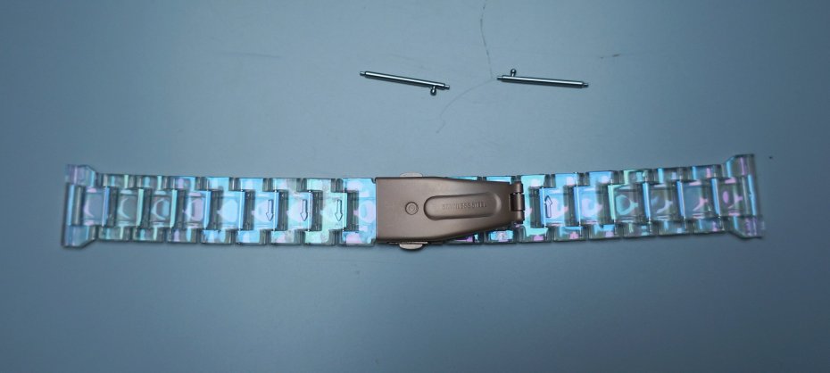 Pasek/bransoletka do zegarka z przezroczystego tworzywa. Zapięcie ze stali nierdzewnej. Szerokość paska 2 cm. Długość 17 cm. Stan nowy, nieużywany.