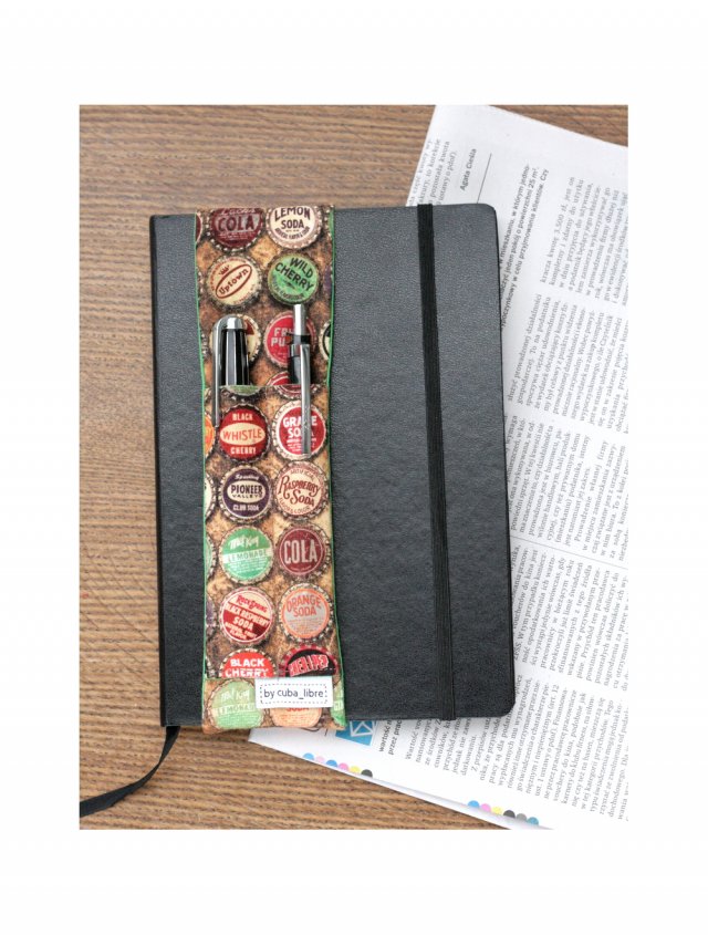 Przybornik pasuje na kalendarz czy zeszyt formatu A5 o grubości 1,5-2cm. Istnieje możliwość uszycia przybornika na większy/grubszy notes.
