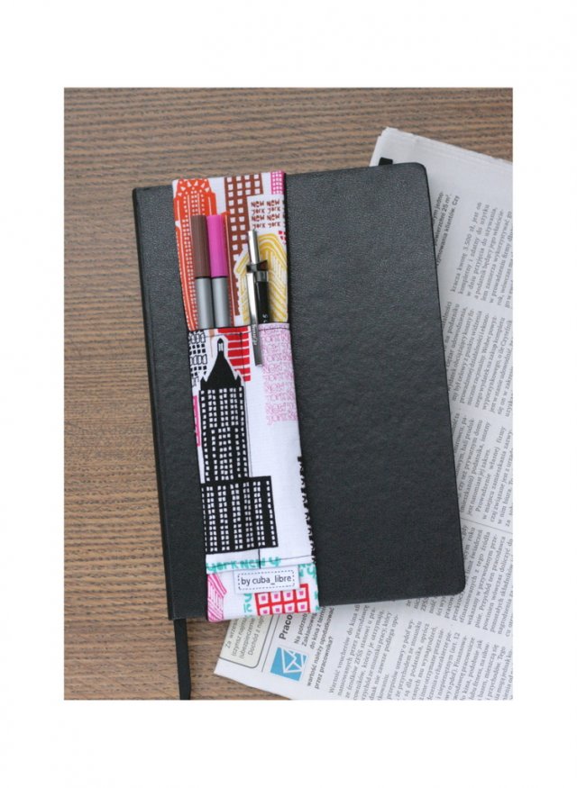 Przybornik pasuje na kalendarz czy zeszyt formatu A5 o grubości 1,5-2cm. Istnieje możliwość uszycia przybornika na większy/grubszy notes.