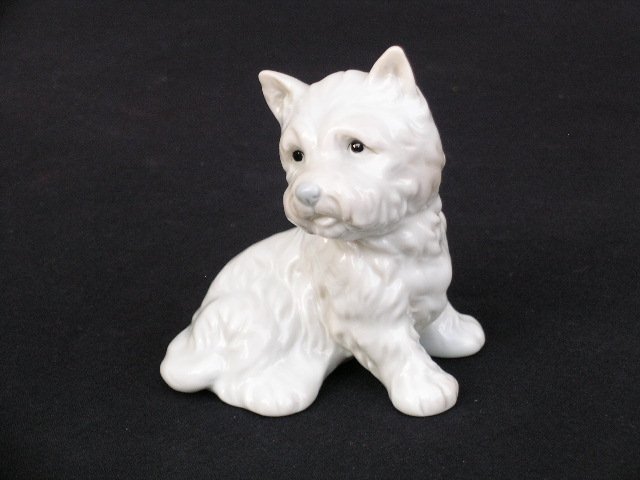 Duża porcelanowa figurka - rasa Westies chyba :) Szlachetnie sygnowana HK z numerem H563A83. Ciepła biel, artystycznie fakturowa, na błyszcząco szkliwiona. Ręcznie malowana. 8,5 x 6,5 x 10 cm. Stan zachowania bardzo dobry. Wartość kolekcjonerska.