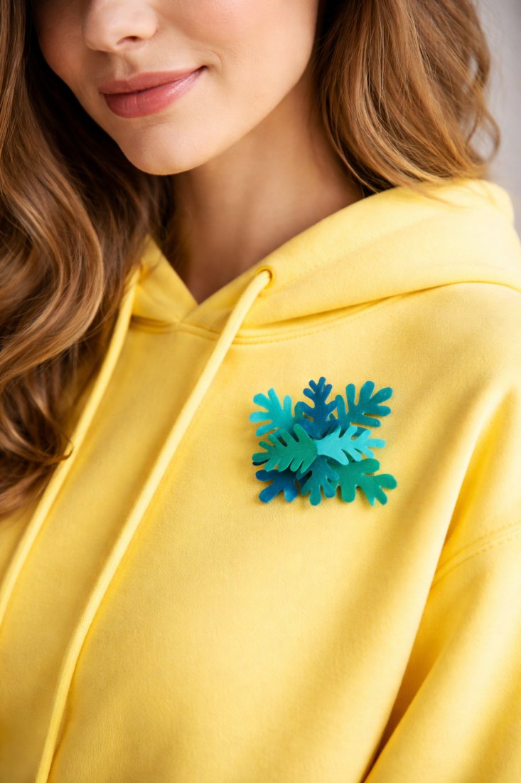 Broszka zostanie spakowana w tekturowy kartonik z wypełniaczem nawiązującym kolorystycznie do biżuterii.