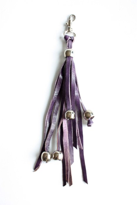 Oryginalny brelok lub przywieszka wykonana prawdopodobnie ze skóry naturalnej lub ekologicznej.