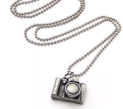 Wisiorek z aparatem fotograficznym + kuleczkowy łańcuszek. Polecam:)