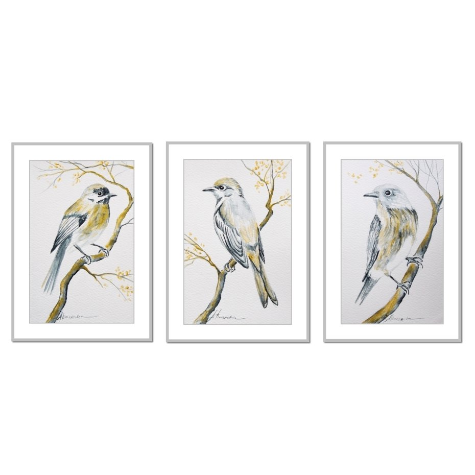 Tagi: #akwarele ptaki, #komplet akwareli, #obraz akwarelowy tryptyk, #obrazy do salonu ptaki