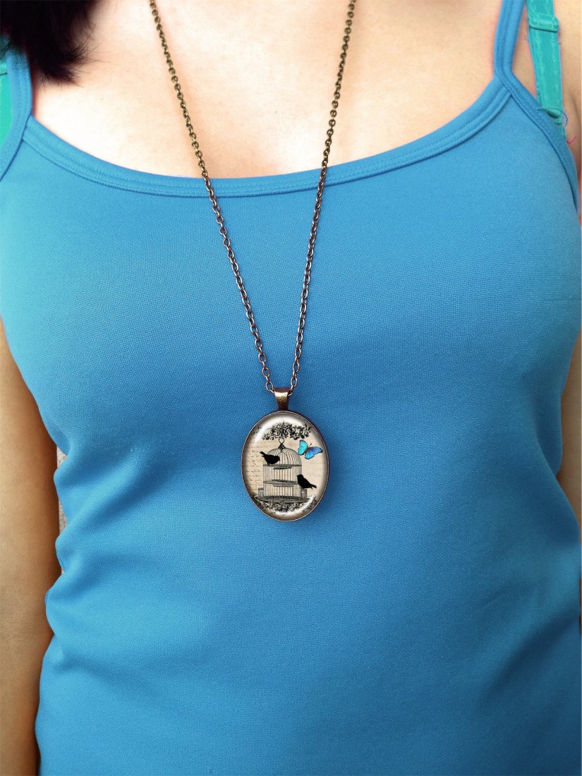Ręcznie robiony duży owalny medalion z wysokiej jakości grafiką.