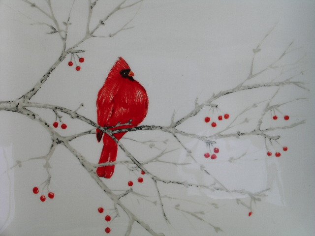 Ciekawy ceramiczny talerz z oryginalnym zdobieniem. Współczesny, a nawiązujący do wielowiekowej tradycji grafik wschodnich tuszem malowanych :) Sygnowany. Ptasi stan - niebiańskie połączenie :) Brzeg fakturowo wzorem gałązki zdobiony. Sygnowany. W pełni użytkowy. 20,5 x 2,5 cm. Stan zachowania bardzo dobry.