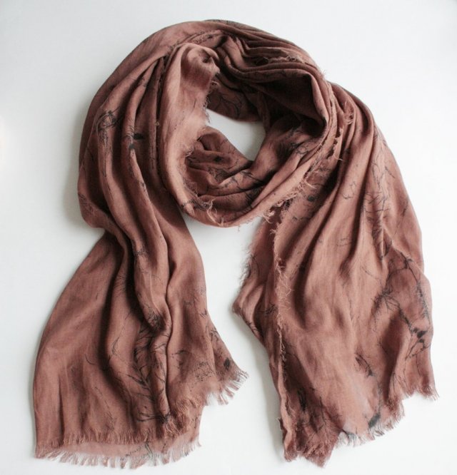 Duży, miękki szal w niezwykle subtelne ptasie wzory. Materiał to prawdopodobnie wiskoza.