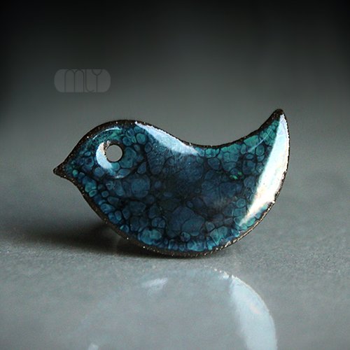 Oryginalna ceramiczna broszka, wykonana z delikatnej gliny kamionkowej, szkliwiona błyszczącym zielonym szkliwem, tył i boki czekoladowobrązowe, zapięcie w kolorze starego złota. Długość ok. 3,8cm. Polecam . Termin realizacji zamówienia to 1-2 dni