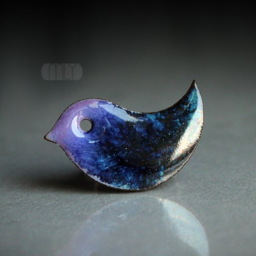 Oryginalna ceramiczna broszka, wykonana z delikatnej gliny kamionkowej, szkliwiona błyszczącym fioletowo błękitnym szkliwem, tył i boki czekoladowobrązowe, zapięcie w kolorze starego złota. Długość ok. 3,8cm. Polecam . Termin realizacji zamówienia to 1-2 dni