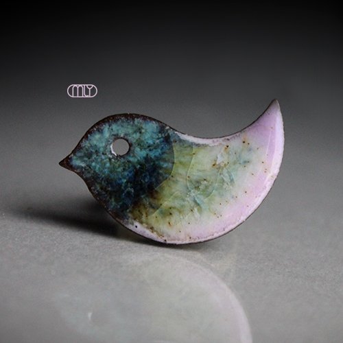 Oryginalna ceramiczna broszka, wykonana z delikatnej gliny kamionkowej, szkliwiona błyszczącym zielonym i jasofioletowym szkliwem, tył i boki czekoladowobrązowe, zapięcie w kolorze starego złota. Długość ok. 3,8cm. Polecam . Termin realizacji zamówienia to 1-2 dni