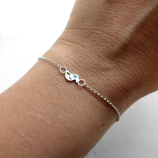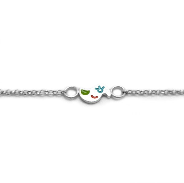 Bransoletka Ptaszek wykonana jest z satynowanego srebra, częściowo emaliowanego (emalia epoksydowa). Urocza bransoletka ma regulowaną długość 15-20 cm. Wykonana ręcznie srebrna bransoleta zaopatrzona jest w niezawodne srebrne zapięcie. Ptaszek ma wymiary 5x8 mm.