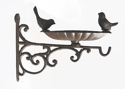 Piękne NOWE stylizowane na stare poidełko dla ptaków wykonane z żeliwa. Poidełko może służyć również jako karmnik dla ptaków, posiada również uchwyt na którym można powiesić kwiaty lub inne