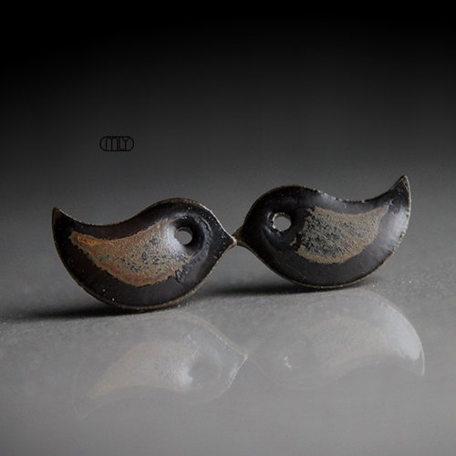Efektowne kolczyki w formie sztyftów, ręcznie wykonane z delikatnej kamionki, jednostronnie szkliwione czarnym szkliwem z efektem plamek, na antyalergicznych sztyftach w kolorze srebrnym.długość elementu ceramicznego ok. 17mm, Polecam