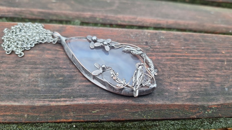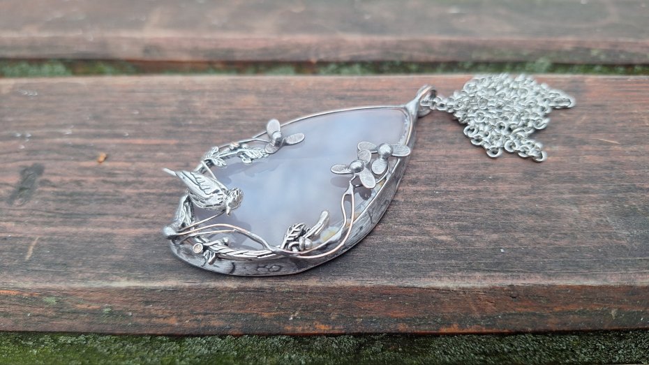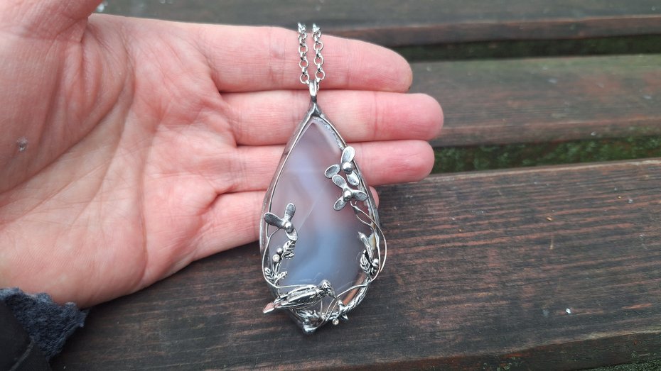 Tagi: #ptak, #szary wisiorek, #wisiorek z agatem, #wisiorek z ptakiem