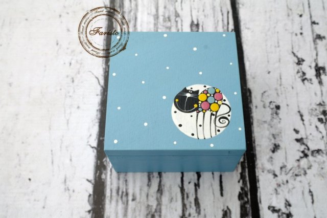 Ręcznie malowane farbami akrylowymi (ekologicznymi) drewniane pudełeczko. Można je przecierać mokrą ściereczką.