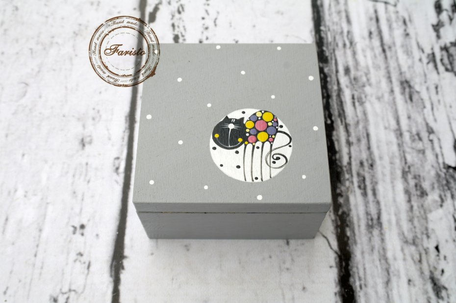 Ręcznie malowane farbami akrylowymi (ekologicznymi) drewniane pudełeczko. Można je przecierać mokrą ściereczką.