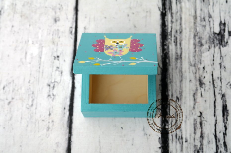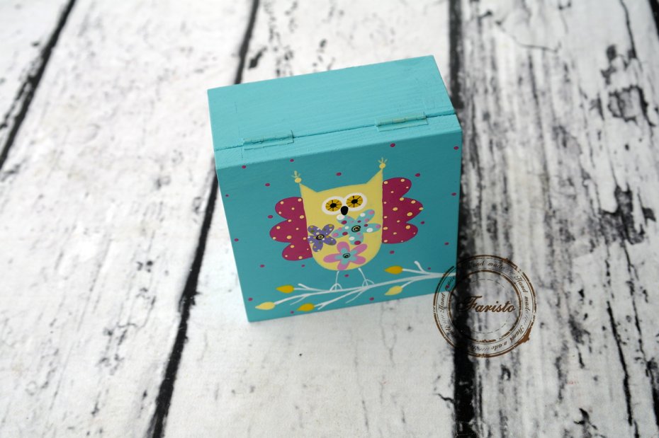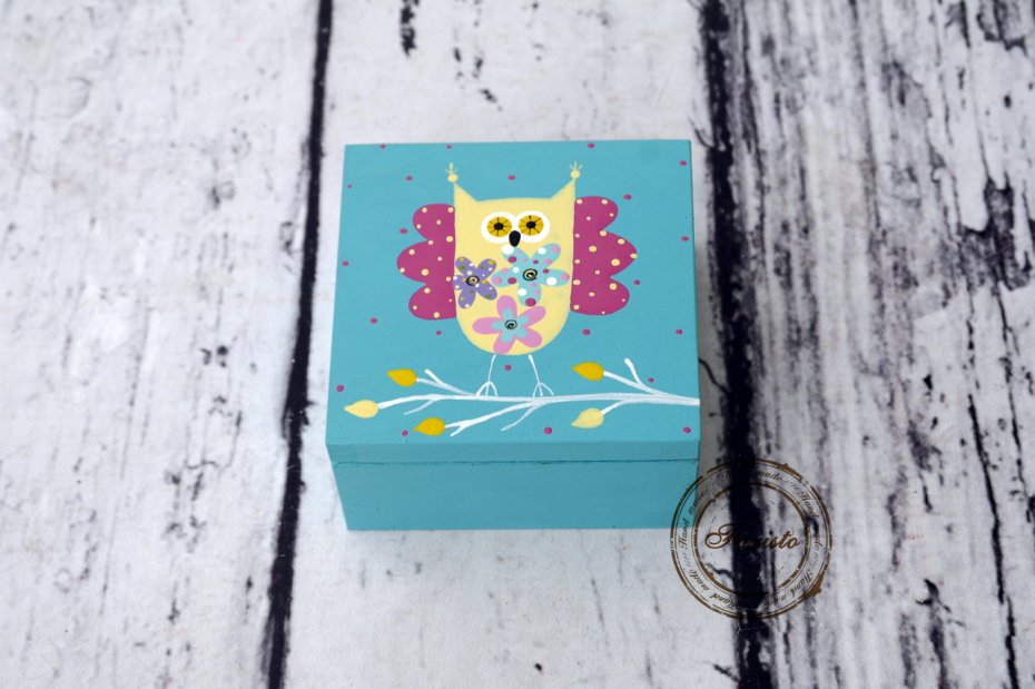 Ręcznie malowane farbami akrylowymi (ekologicznymi) drewniane pudełeczko mini na różne skarby. Pudełko można przecierać mokrą ściereczką. Istnieje możliwość personalizacji pudełka.