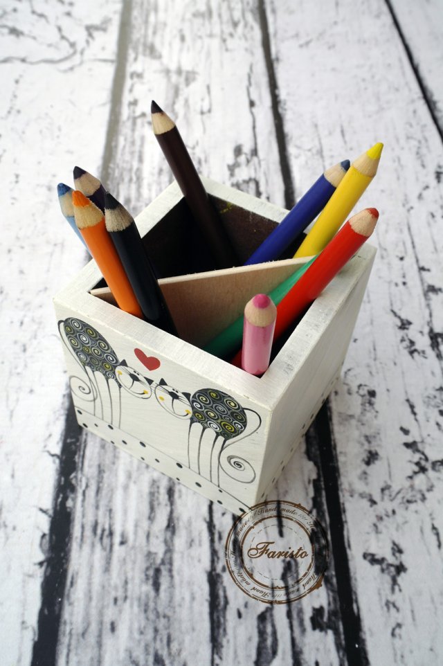 Pudełko drewniane ręcznie malowane na kredki, długopisy, ołówki... Ma wyjmowaną przegródkę. Malowane farbami akrylowymi (ekologicznymi).
