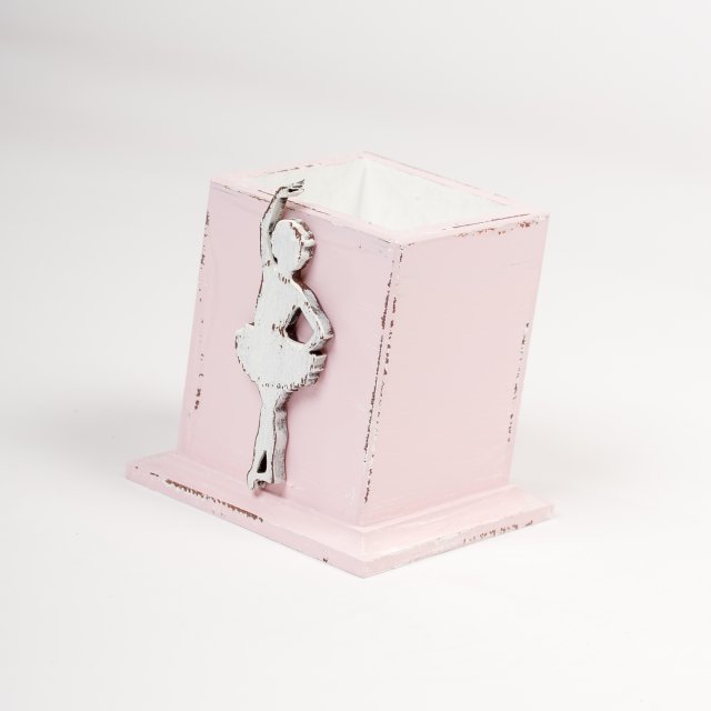 Drewniane pudełko na ołówki ozdobione roztańczoną baletnica