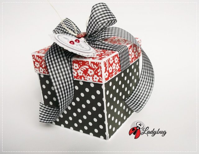 Unikatowe pudełko w energetycznym i eleganckim połączeniu czerni, czerwieni i bieli to oryginalny sposób na przekazanie życzeń oraz gotówki Młodej Parze. Pudełko po podniesieniu wieczka rozkłada swoje cztery ścianki, na których znajdują się kieszonki (na gotówkę lub kupony lotto). Każda kieszonka ozdobiona zabawną propozycją wydania pieniędzy m.in. "na mądre decyzje" "na egzotyczne podróże" itp.