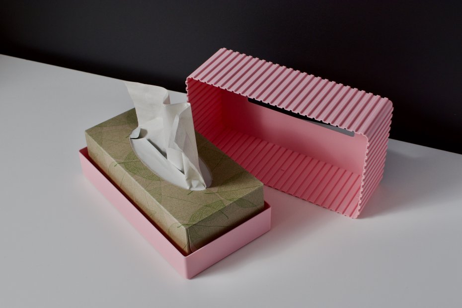 Pudełko ozdobne na chusteczki wykonane w całości w technologii druku 3D. Nie jest to tylko osłonka na oryginalne pudełko z chusteczkami. Podstawa oraz osłona, całość pozwala ukryć zawartość, ale także ułatwia przenoszenie bez ryzyka wysunięcia się zawartości.