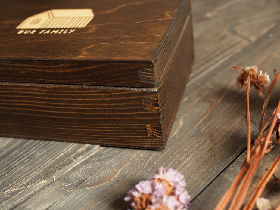 Pudełko wykonane z drewna mieszczące plik zdjęć w formacie 10x15cm, malowane nietoksycznymi farbami wodoodpornymi, z personalizowanym grawerem. Do wyboru różne warianty grawerów, mogę też połączyć dwa warianty w jeden, coś zmodyfikować w istniejących lud wygrawerować wzór wysłany przez klienta albo logo firmy.