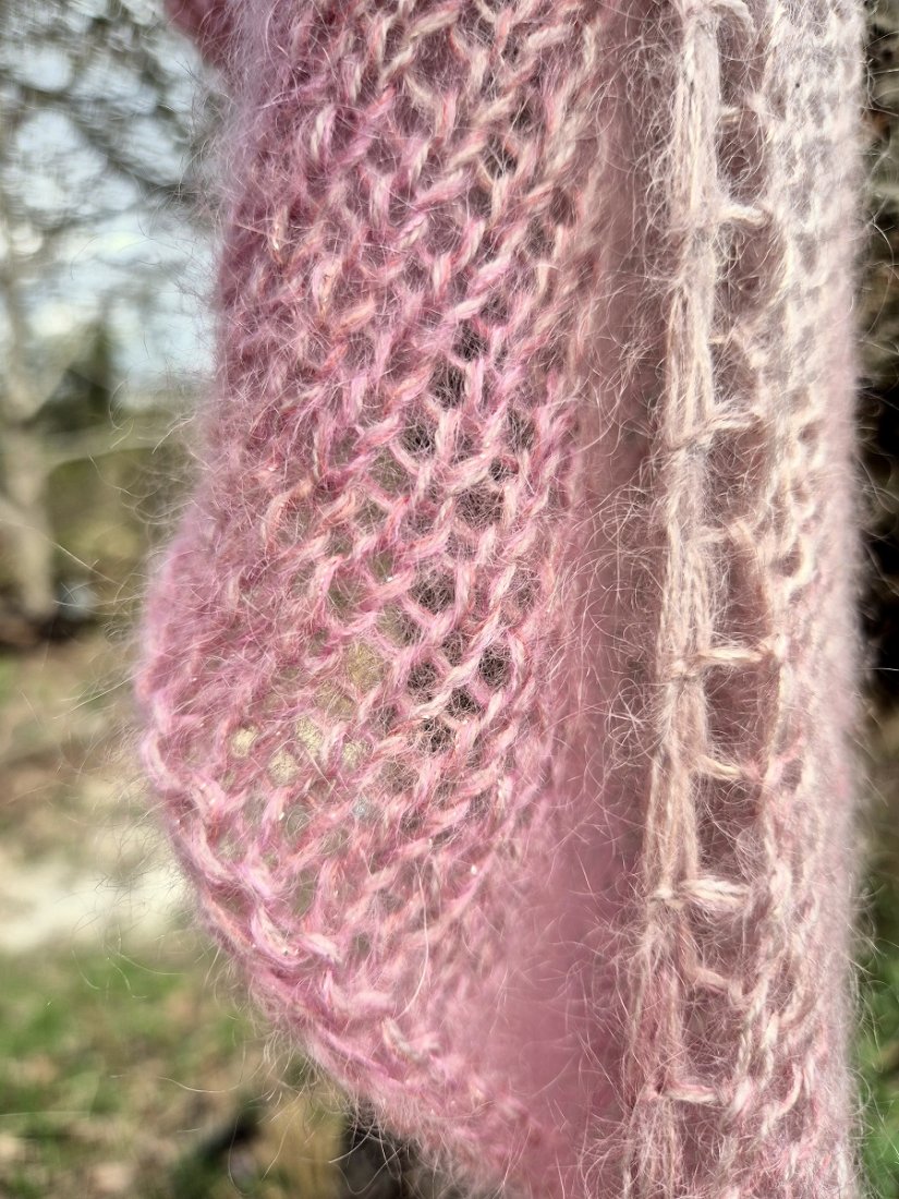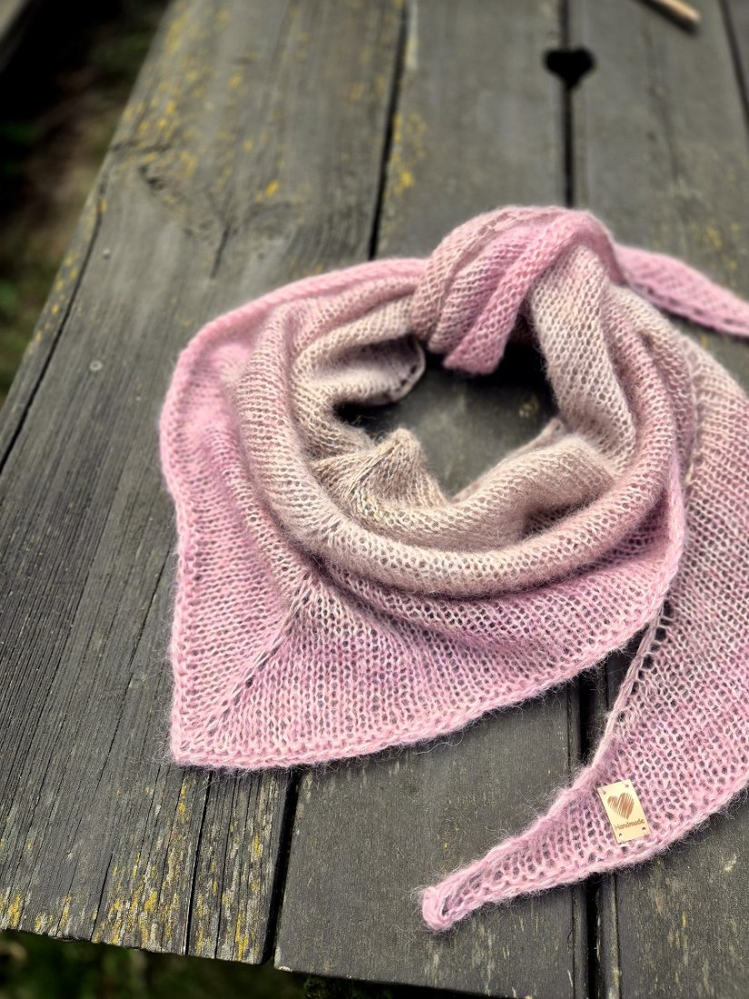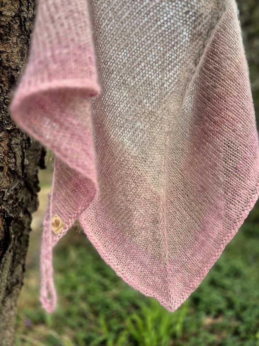 Ciepła, miękka, puszysta i bardzo lekka chusta, wykonana ręcznie na drutach z trzech cieniutkich cudownych włókien.