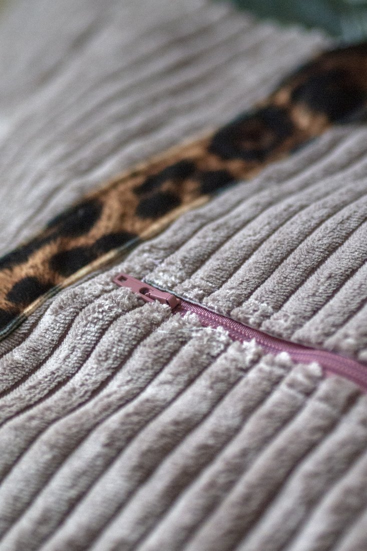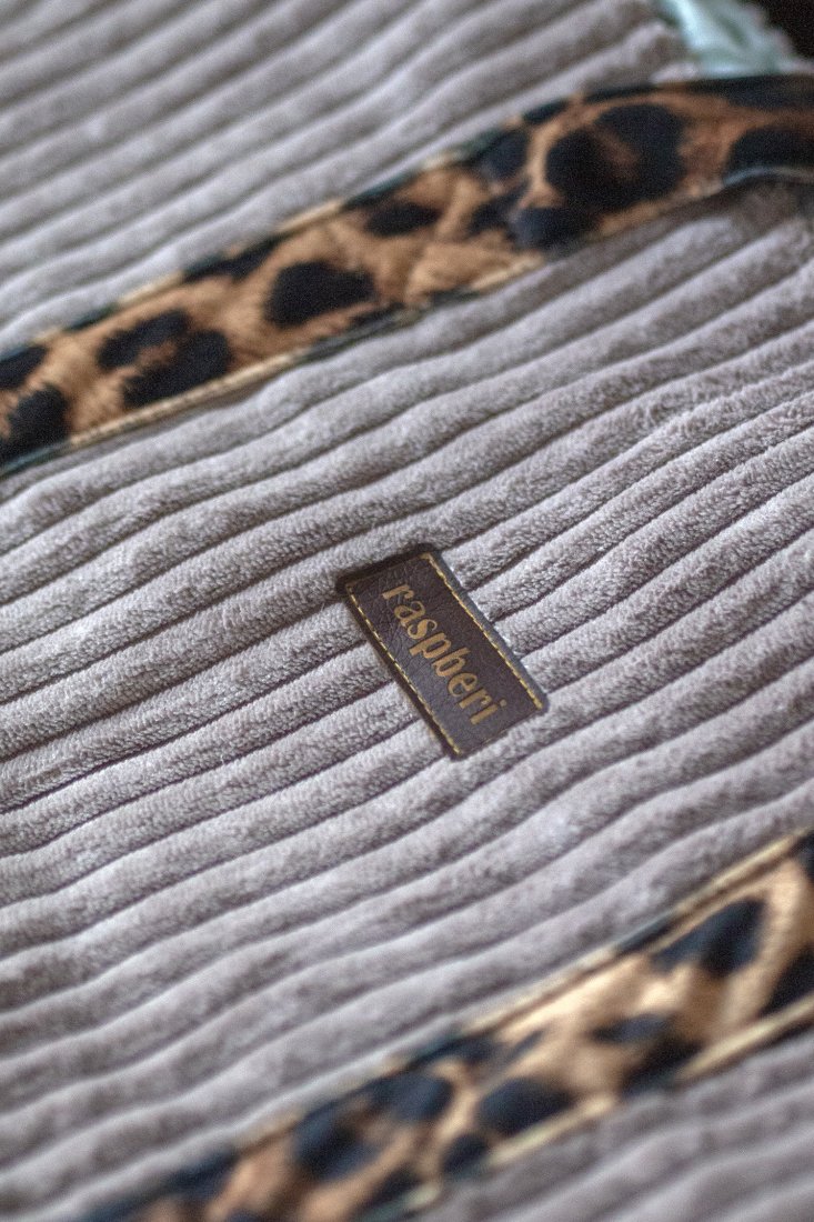 Duża torba typu shopperka w kolorze pudroworóżowym wykonana z grubego sztruksu. Pasy z weluru w panterkę.
