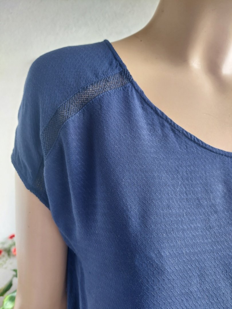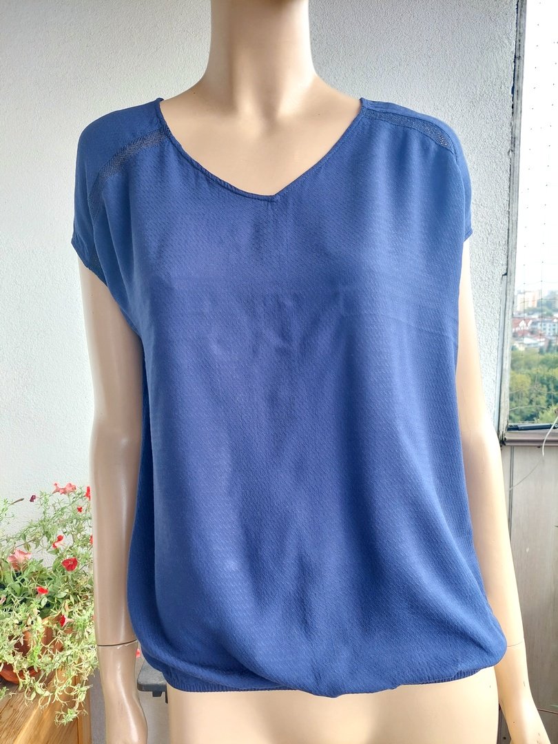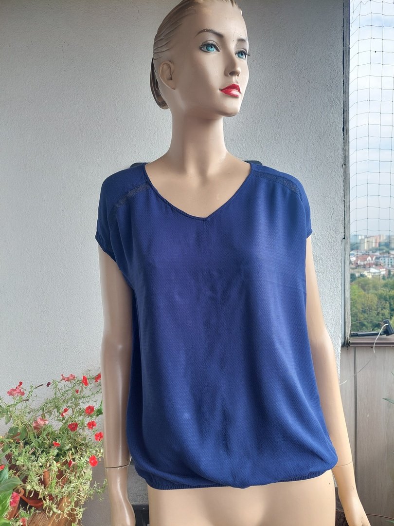bluzka marki pulz jeans. kolor granatowy. materiał 100%wiskoza. na dole delikatna gumka. rozmiar z metki M. na manekinie o rozmiarze 38. stan bardzo dobry.