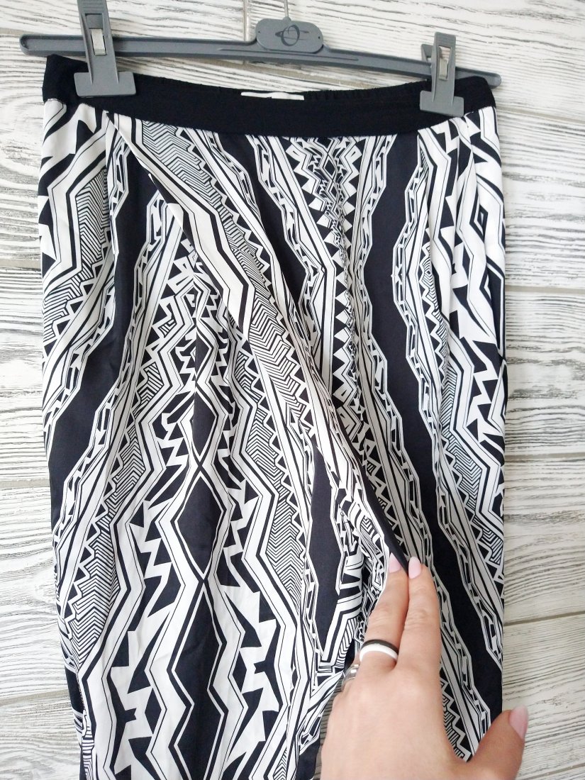 Lekkie spodnie w biało czarny wzór.