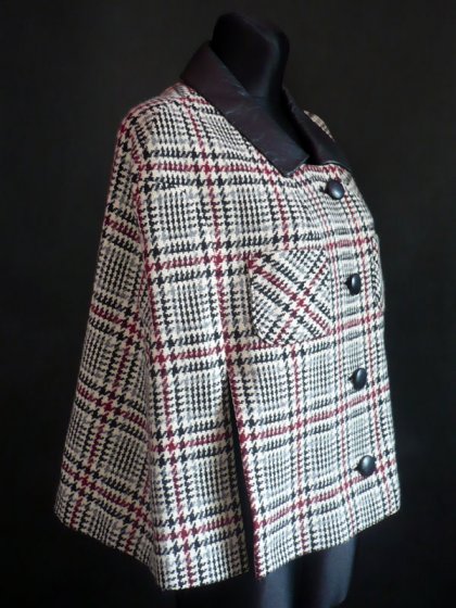 Oryginalna - angielska-peleryna vintage. Wykonana z czystej wełny.Kołnierz i guziki ze skóry.Dwie małe kieszonki. Czarna podszewka. Rozcięcia na ręce.