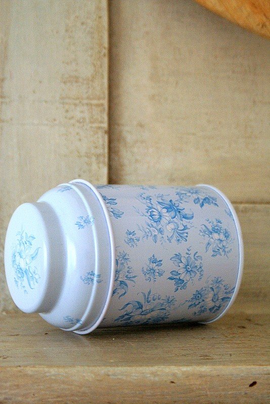 Urocza mała puszka w błękitnym kolorze w niebieskie kwiatuszki. Idealna na do przechowywania np. guzików:) Bardzo ładna w stylu chic:)