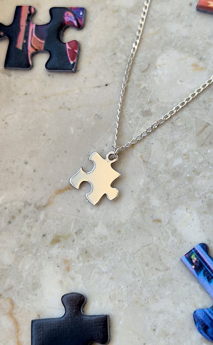 Naszyjnik męski z zawieszką w kształcie puzzla. Wykonany ze srebra próby 925