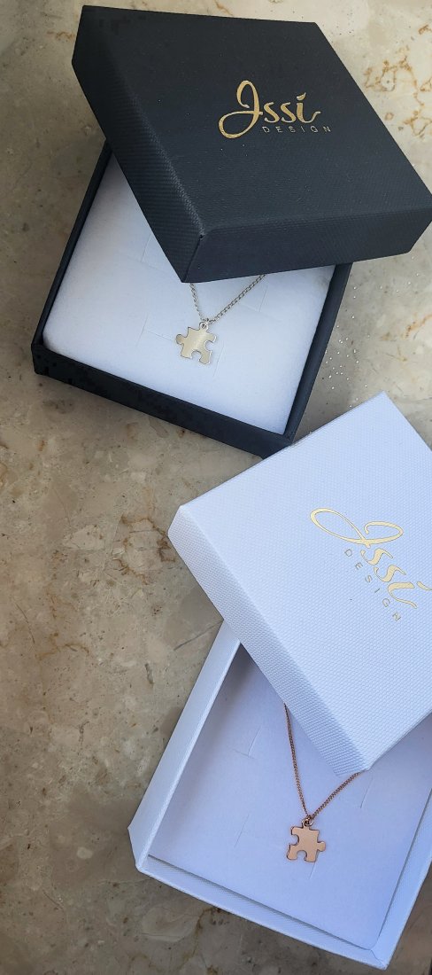 Naszyjnik pakowany w ozdobne firmowe pudełeczko.
