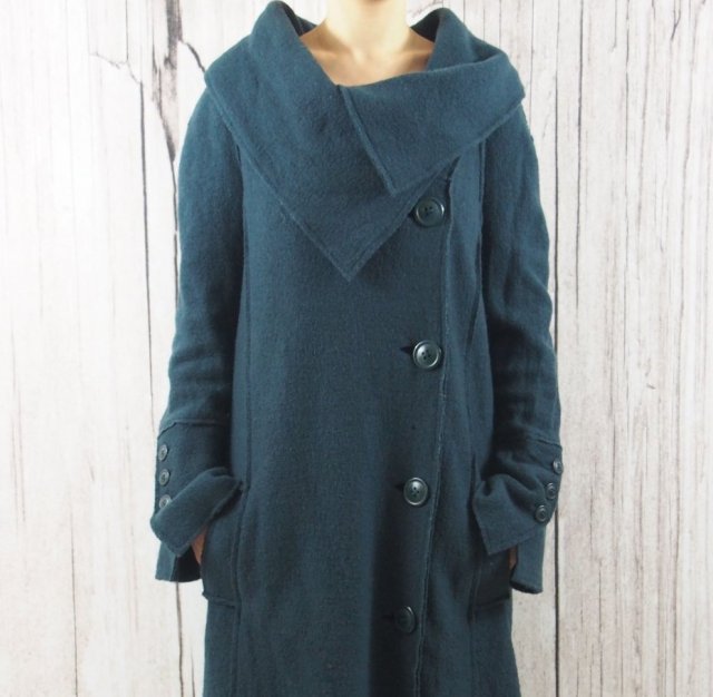 Przepiękny artystyczny wełniany płaszcz proj. QUIN and DONELLY. Z wełny filcowanej 100%.