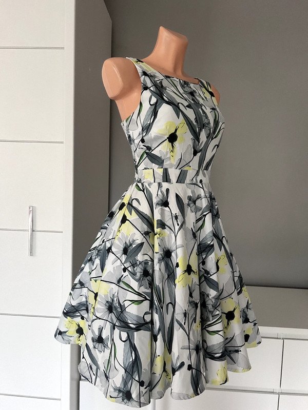 4.  > Quiz 38 M sukienka a'la satynowa rozkloszowana stojąca na tiulu vintage pin up kwiatowy wzór (nr 7115407)