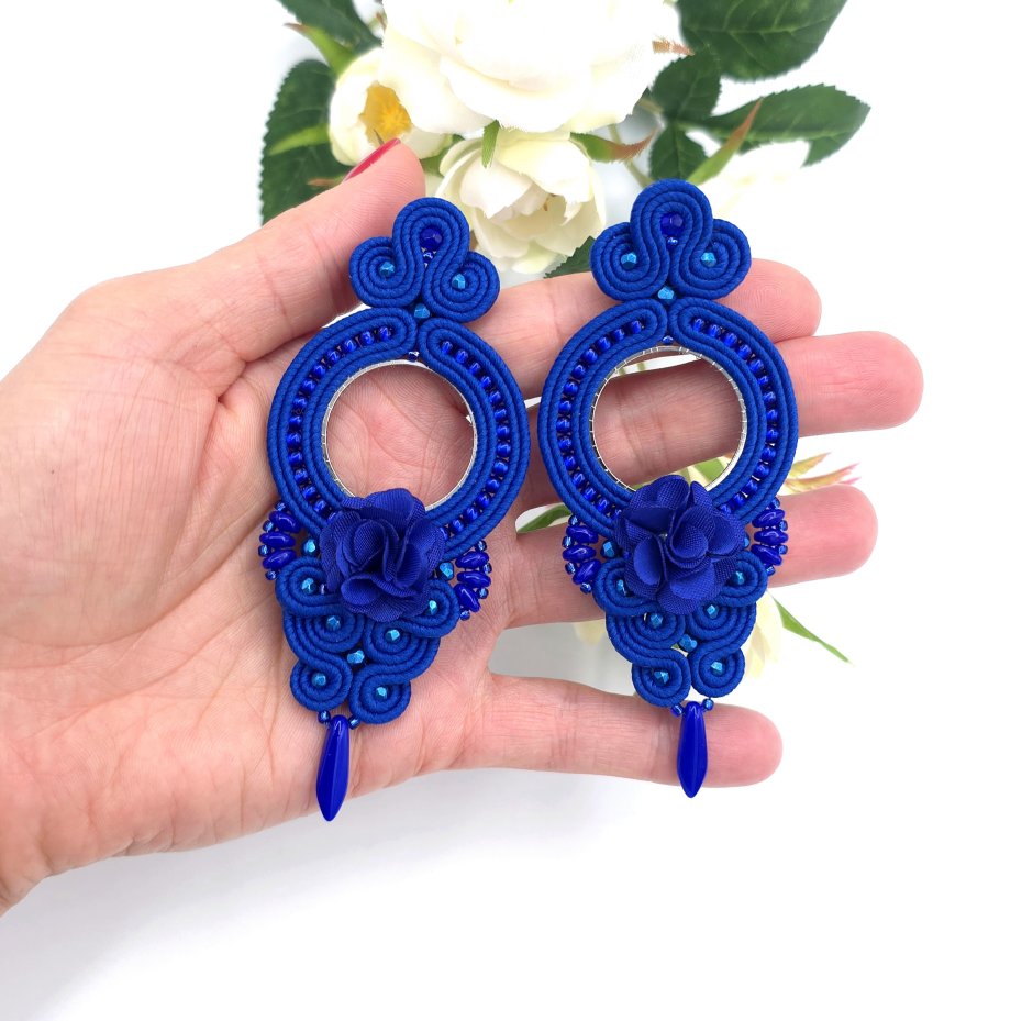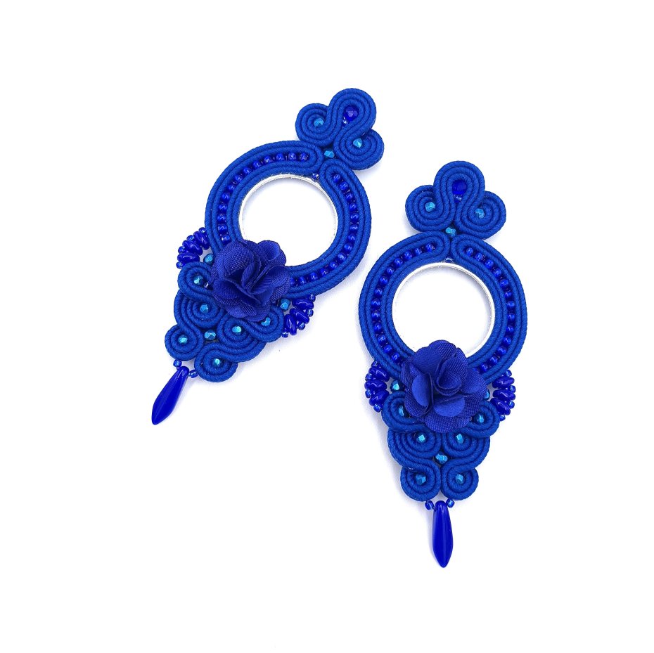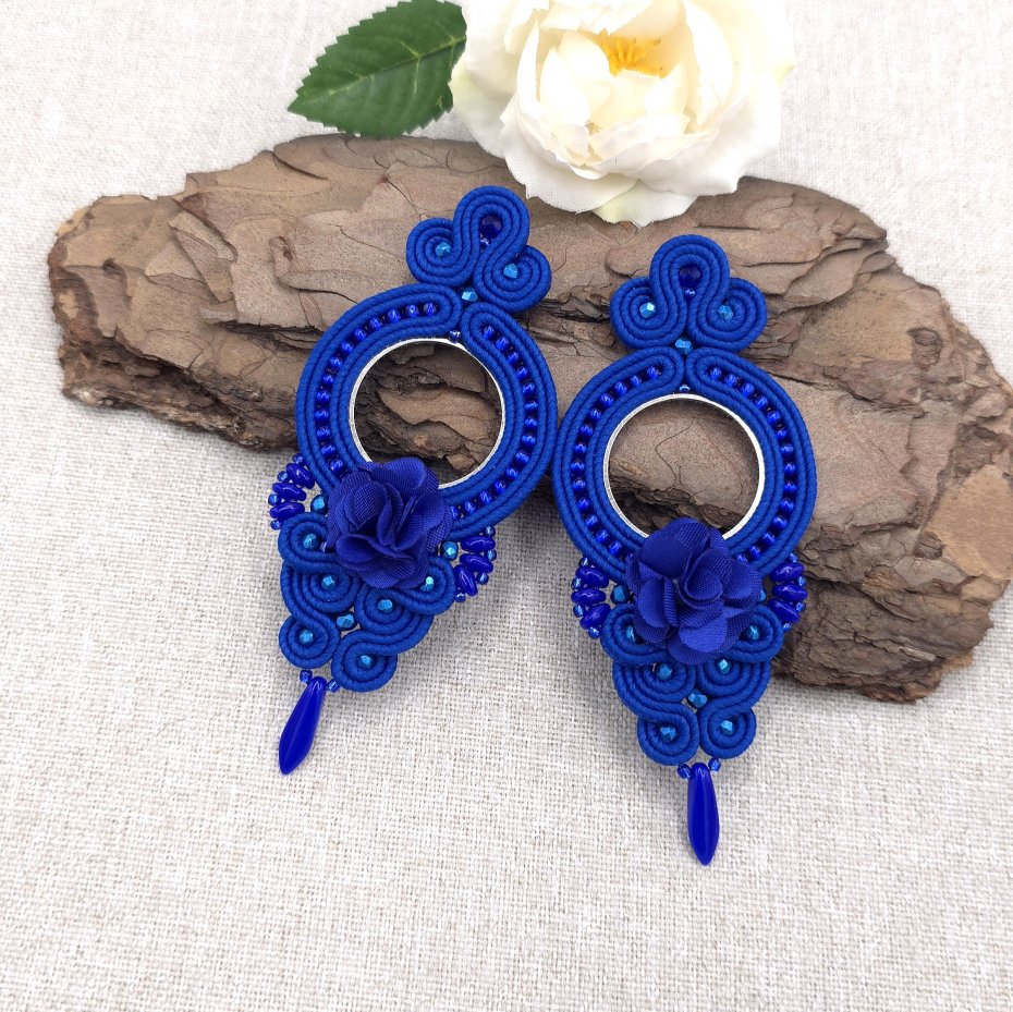 Eleganckie kolczyki sutasz w intensywnym, kobaltowym kolorze, wykonane na bazie w kształcie koła.
