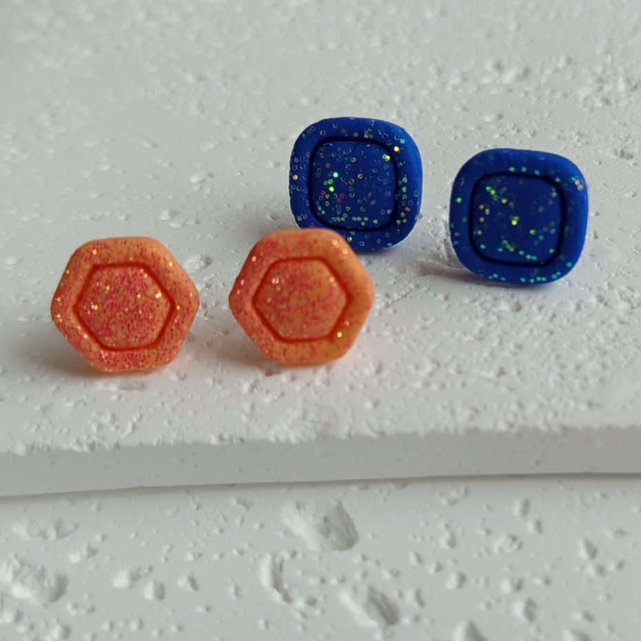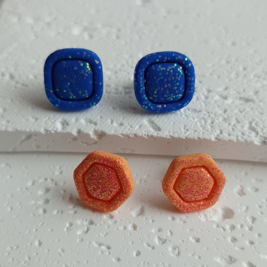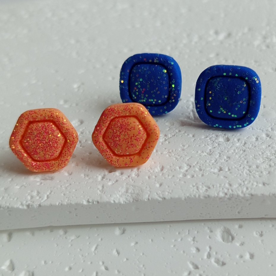 "Luna I" - zestaw dwóch par kolczyków sztyftów, wykonanych ręcznie z gliny polimerowej.