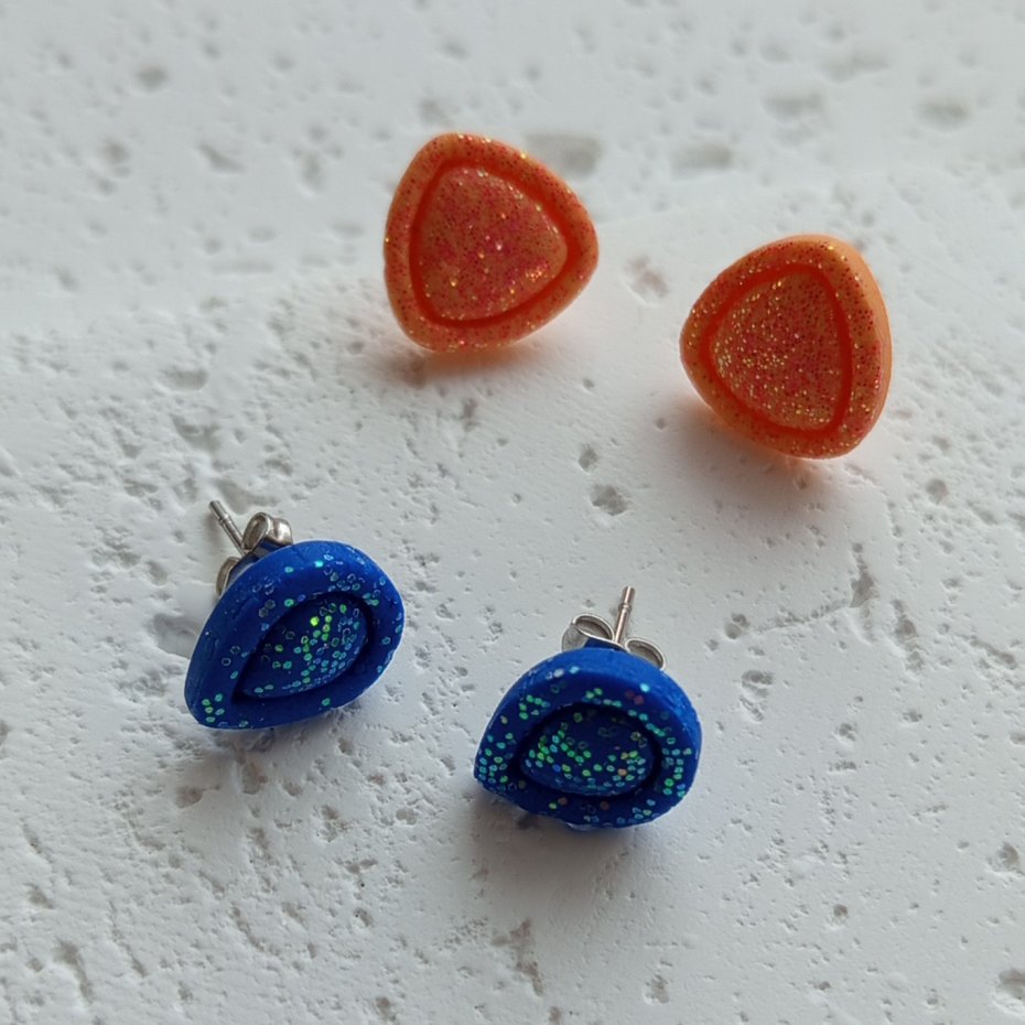 "Luna II" - zestaw dwóch par kolczyków sztyftów, wykonanych ręcznie z gliny polimerowej.