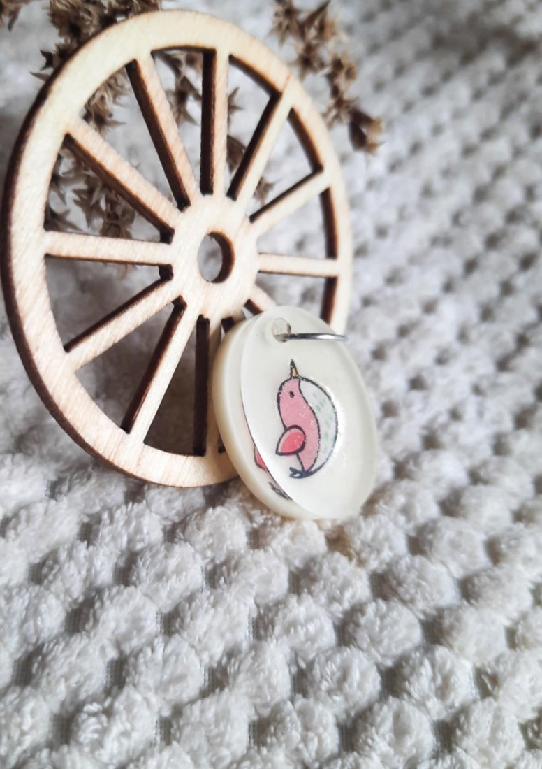 Ręcznie wykonane wisiorki z białej żywicy z zatopioną grafiką różowego ptaszka. Srebrne wykończenie. Idealne do różnych stylizacji, pięknie się prezentuje. Unikatowa biżuteria to idealny prezent dla ukochanej osoby, ale także oryginalna ozdoba dla samej siebie :)