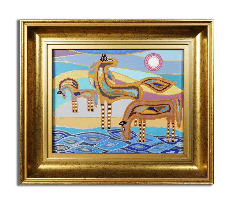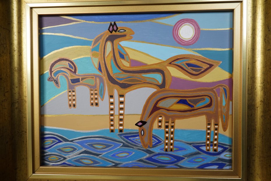 "Sielsko i anielsko 4" - obraz malowany na płycie, farby akrylowe. Wymiary 32 x 37 cm wraz z ramą. Sygnatura z tyłu obrazu.
