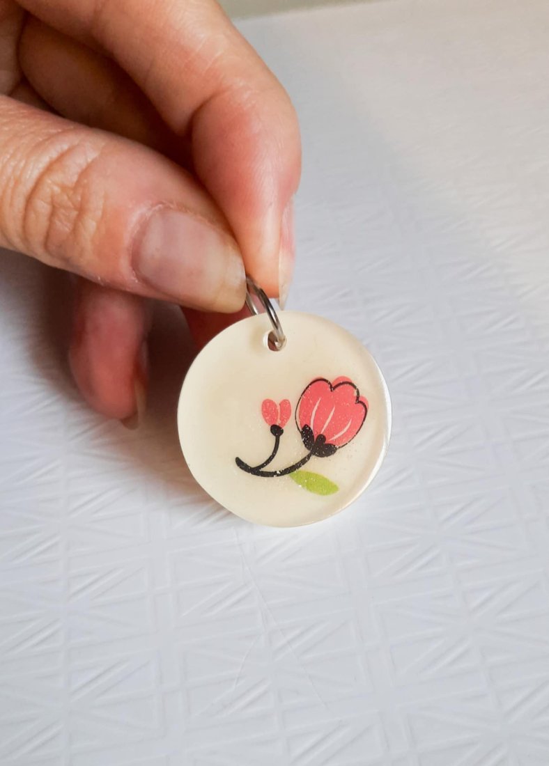 Tagi: #prezent, #różowy kwiat, #tulipan, #wisiorek z żywicy