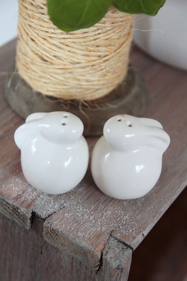 Urocze ceramiczne zajączki jeden na pieprz drugi na sól:) Na podstawce.