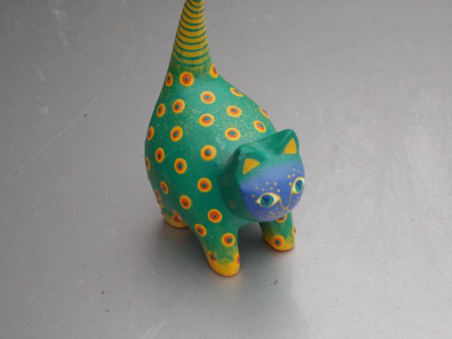 Radosna,kolorowa,ręcznie malowana Kocia Figurka. Drewno to raczej niż masa,bo dość lekka. Urocza :) Dekoracyjna :) Niespotkana ;)