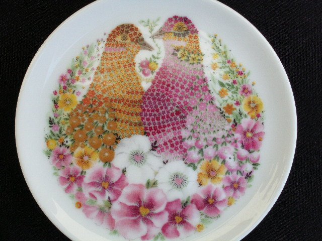 Talerzyk porcelanowy, sygnowany, z bajecznie barwnej serii Collection Coeur. W pełni użytkowy. Aż świeci kolorami :)