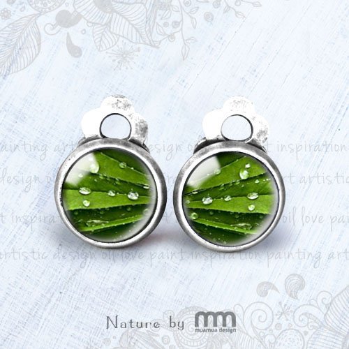 Rain Drops - klipsy to bardzo kobiece i malutkie dzieła sztuki, które łączą nowoczesność z odrobiną antycznego powiewu. Obrazki pod szkiełkiem to miniatura autorskiego obrazu. Klipsy pasują świetnie do naszyjnika Rain Drops dostępnego w osobnej ofercie.