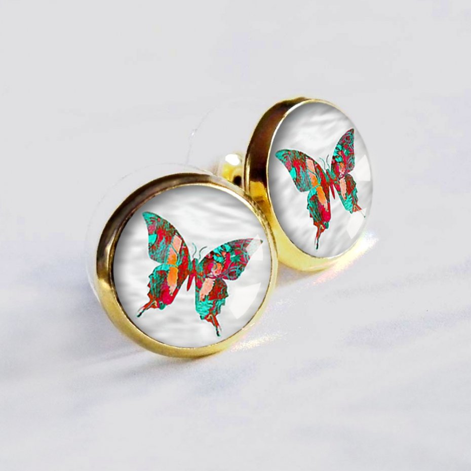 Delikatne, malutkie kolczyki na sztyfcie, tak zwane wkrętki, z oryginalną grafiką zatopioną pod wypukłym szkiełkiem, w oprawie w kolorze złota. Grafika jest najwyższej jakości, wywołana na papierze fotograficznym, dokładnie odzwierciedla szczegóły. Szkła z grafiką są unikatowe, wykonane ręcznie według mojego projektu, z dbałością o każdy detal, dzięki czemu biżuteria ta jest jedyna w swoim rodzaju i niespotykana. Kolczyki hipoalergiczne, nie zawierają niklu i ołowiu.