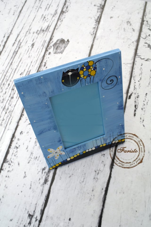 Ręcznie malowana farbami akrylowymi (ekologicznymi) drewniana ramka na zdjęcie.